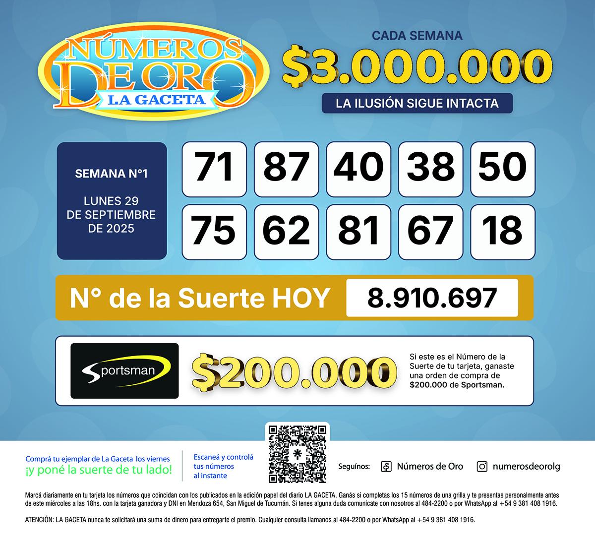 Los Números de Oro de LA GACETA del 29 de septiembre de 2025