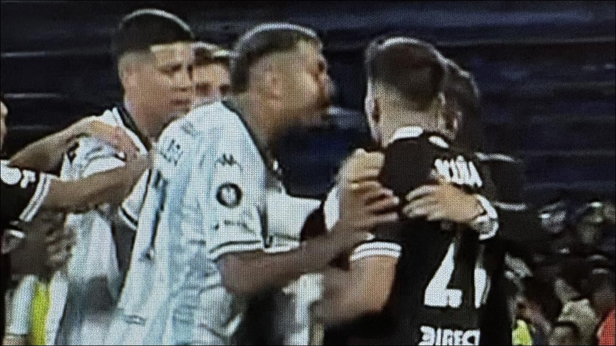 ESCENA INSÓLITA. Balboa escupe a Marcos Acuña en pleno tumulto tras el final del River–Racing por la Copa Argentina. Captura