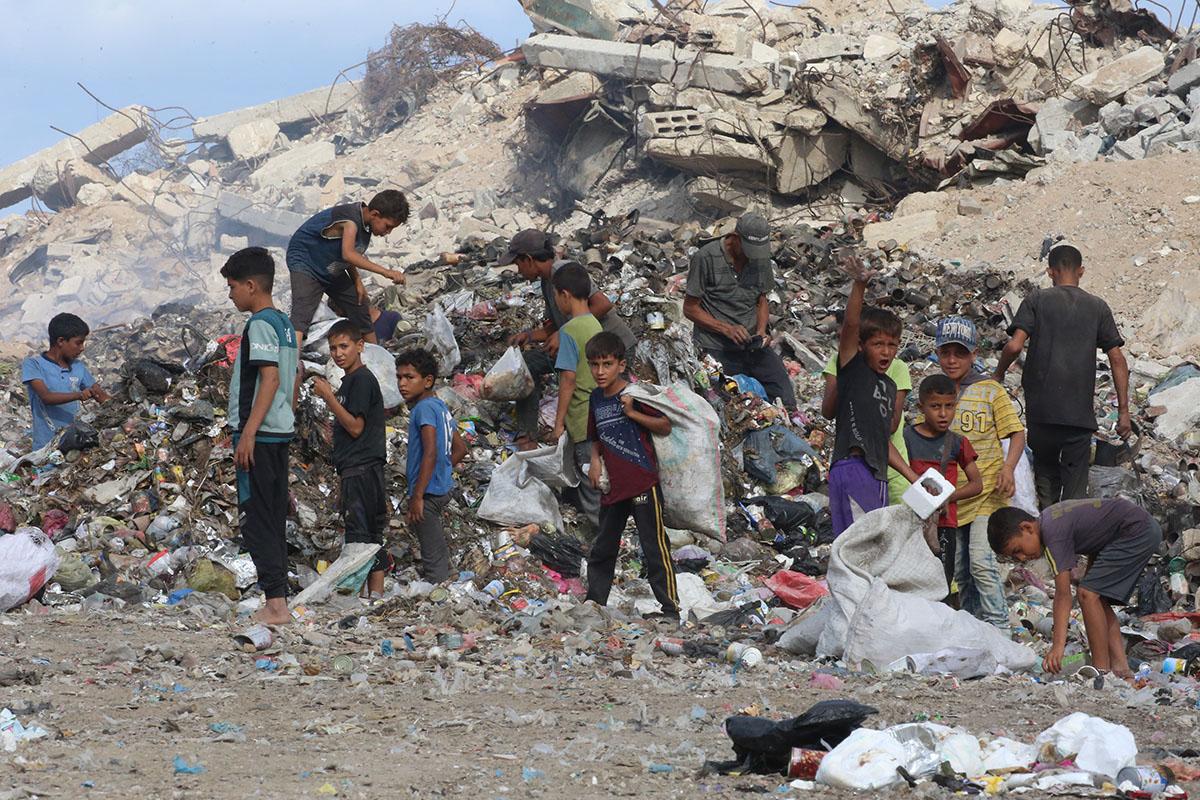 RASTREO. Niños palestinos buscan entre la basura material para hacer fuego y poder cocinar.