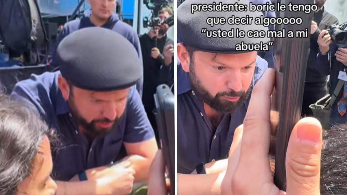En medio de la actividad, un niño se le acercó al Presidente para plantearle la opinión que tenía su abuela respecto a él. La conversación quedó registrada por una usuaria que compartió el registro a través de TikTok con el título: “Mi hijo le dice al presidente ‘Boric le tengo que decir algo: usted el cae mal a mi abuela’”.