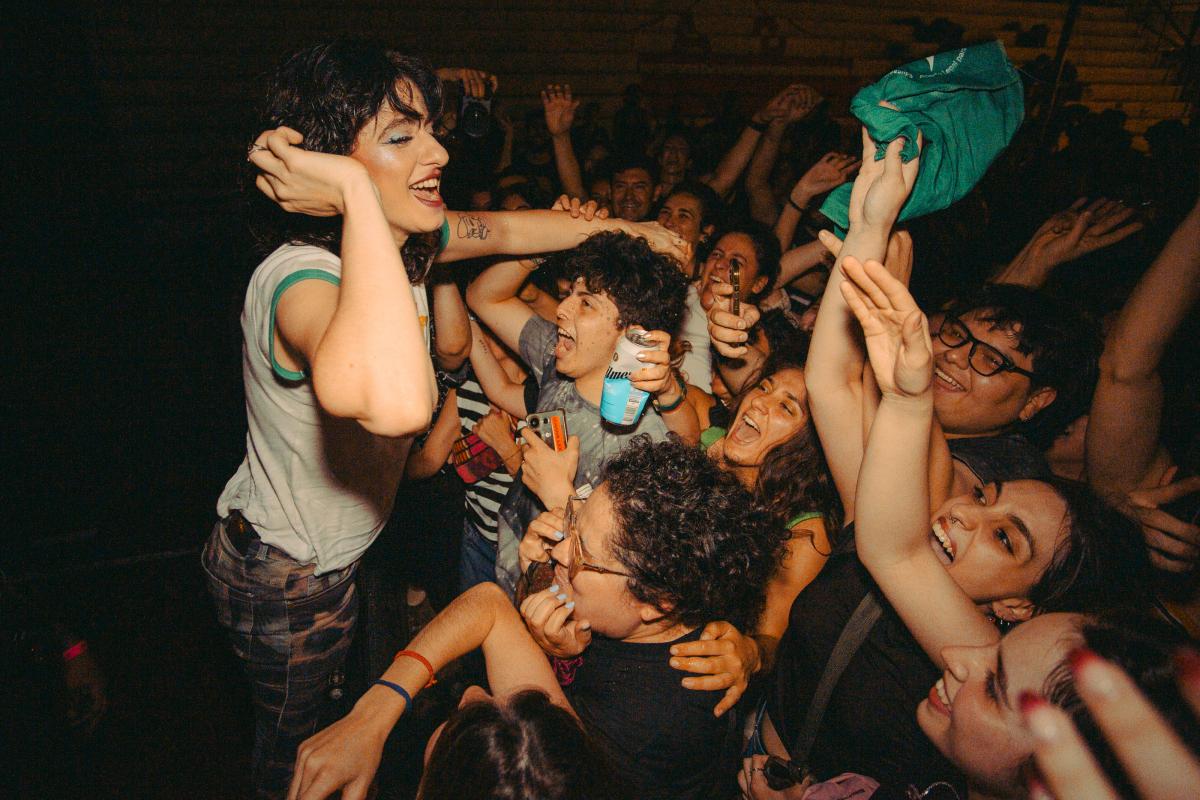 A la medianoche, el pogo se extendía cada vez más, desde el centro hasta sus periferias, y el calor humano era contrarrestado por los fuertes vientos y gotas de agua que se colaban por parte de la lluvia de alerta amarilla que acaparó toda la provincia. Los hits de “Sexo con modelos” (2016), y “Mojigata” (2022) encendían todo All Boys. En medio del temblor musical, hizo la única pausa de toda la noche, para saludar a Camila Plaate. “Quiero pedir un aplauso para alguien que está aquí, felicidades por todo lo que está pasando con ‘Belén’, te lo merecés”, dijo en referencia a la película nominada al Oscar. Momento de cruce de colegas, debido a que la artista realizó la música del filme dirigido por Dolores Fonzi y grabado en esta provincia.