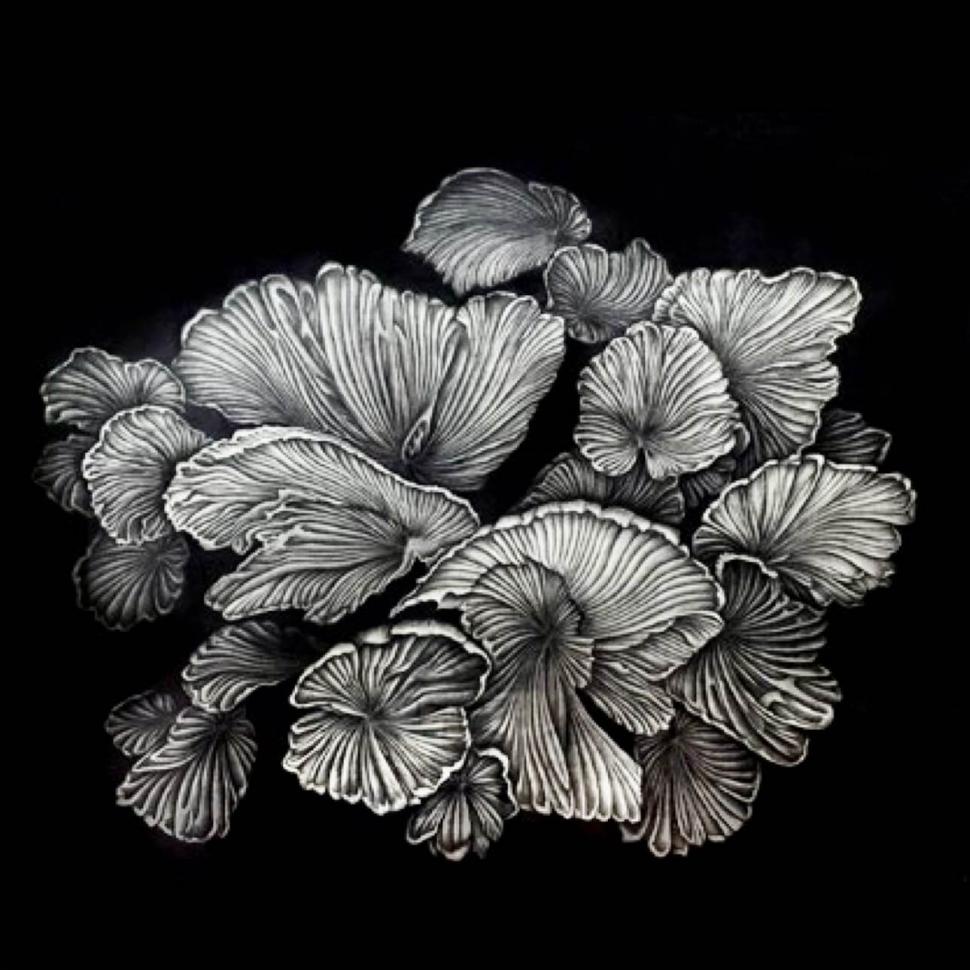 Rodrigo Alonso, curador de la exposición, destaca que “Tierra mutante” continúa las indagaciones de Moreiro sobre el desarrollo de la vida en un hábitat amenazado. “Con mirada aguda y punzante, la artista reproduce hongos, frutos, flores y plantas, mediante un claroscuro potente, con el fin de poner de manifiesto la diversidad y versatilidad de una naturaleza que se resiste a dejar de brindar su pródigos beneficios al mundo, a pesar de las negligencias y los descuidos de la humanidad”, expresa Alonso en el texto curatorial.
