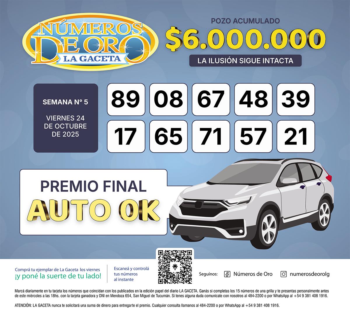 Los Números de Oro de LA GACETA del 24 de octubre de 2025