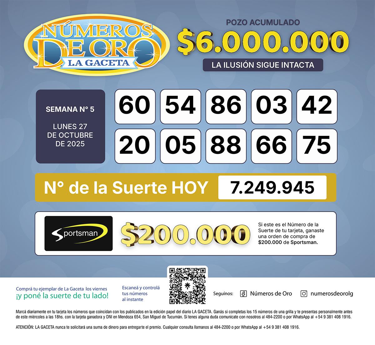 Los Números de Oro de LA GACETA del 27 de octubre de 2023