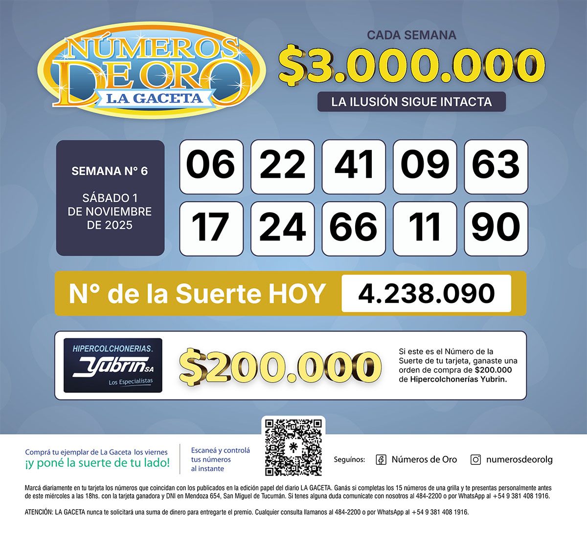 Los Números de Oro de LA GACETA del 1 de noviembre de 2025