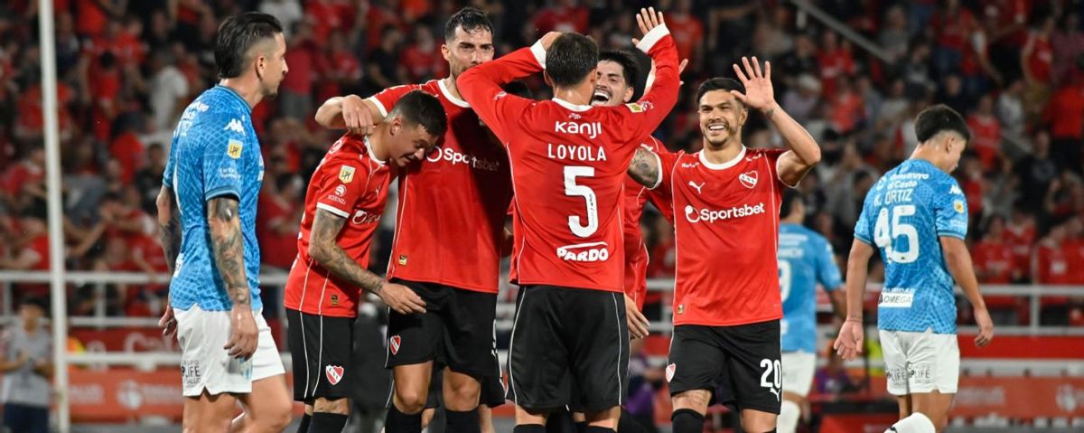 CONTRASTE. Los jugadores de Independiente celebran uno de los goles; los