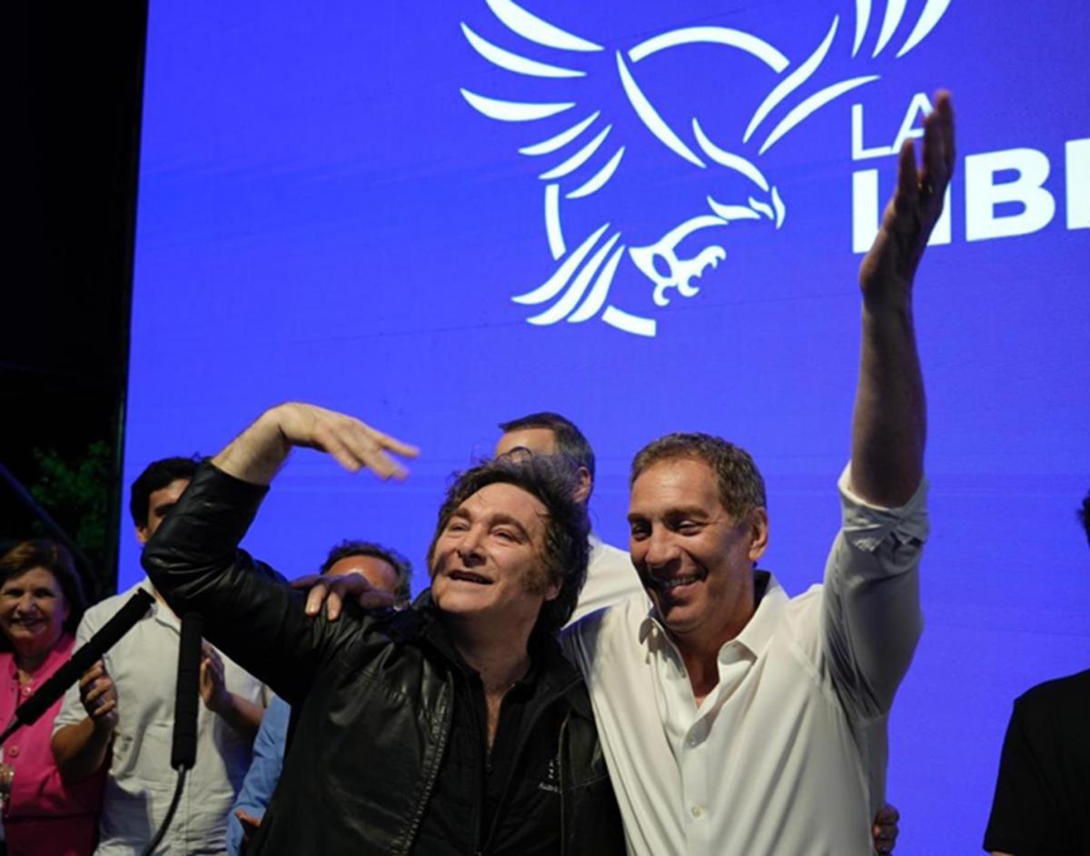 Javier Milei y Diego Santilli, en un acto de La Libertad Avanza. FOTO X @diegosantilli