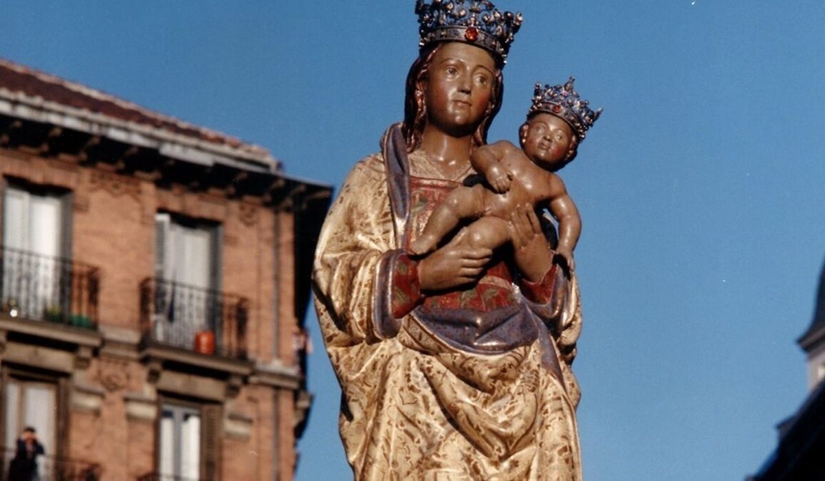 Nuestra Señora de la Almudena — Patrona de Madrid. Según la tradición, en el año 1085 apareció una imagen de la Virgen en la muralla de la Puerta de la Vega, ocultada durante la dominación musulmana.
