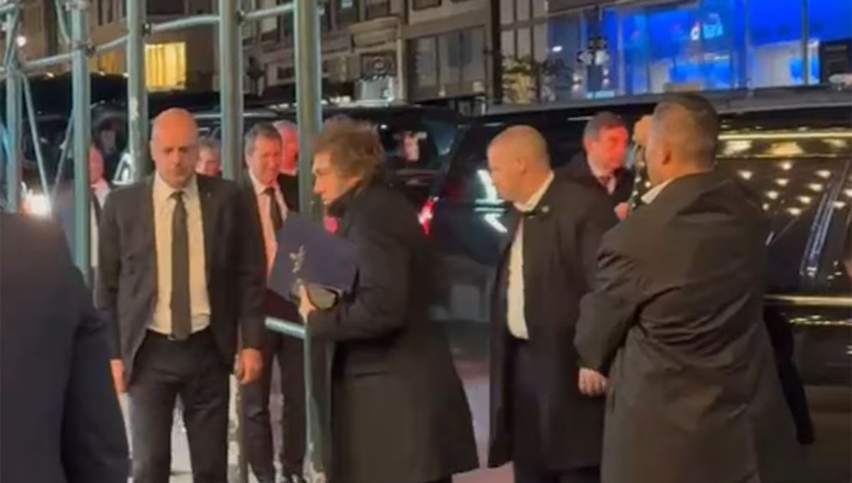 DE MADRUGADA. Milei y su comitiva arribaron pasadas las 5 al hotel ubicado en la Quinta Avenida. FOTO TOMADA DE INFOBAE.COM