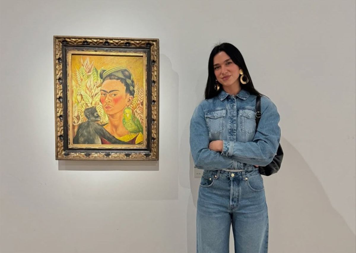 OBRA. Dua Lipa junto a “Autorretrato con chango y loro”, en el Malba.