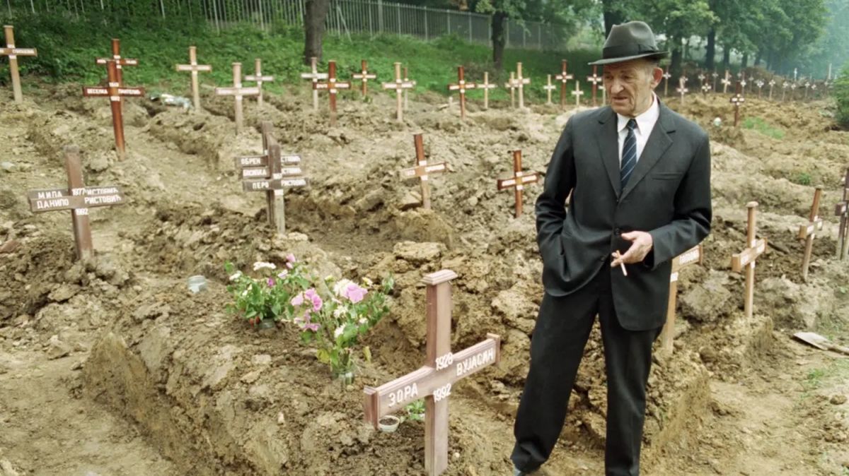 Rade Vuyasin visita la tumba de su esposa, que fue asesinada por un francotirador durante la guerra de Bosnia en 1992.GETTY IMAGES