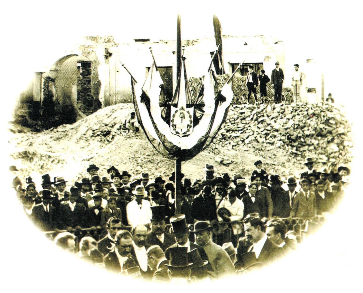 Recuerdos fotográficos: 1908. Colocan la piedra basal de la Casa de Gobierno