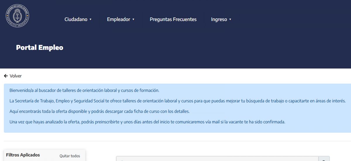 PORTAL DE EMPLEO. La página del Gobierno tiene formaciones gratuitas para mejorar la capacidad de conseguir un trabajo. / CAPTURA DE PANTALLA