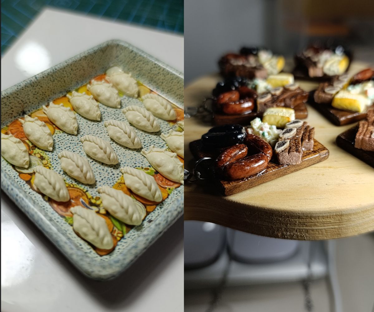 Con el tiempo, Onilia quedó atrás. Julieta empezó a incorporar elementos que la habían acompañado siempre: vajilla antigua, juguetes pequeños, objetos vintage y, casi sin planearlo, fue armando un imaginario propio. Ese universo creció hasta convertirse en Plutonia, el emprendimiento que la llevó a desarrollar piezas modeladas a mano que representan comida típica argentina.