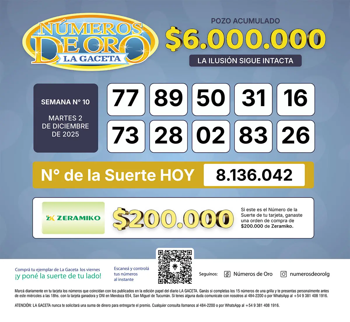 Los Números de Oro de LA GACETA del 2 de diciembre de 2025