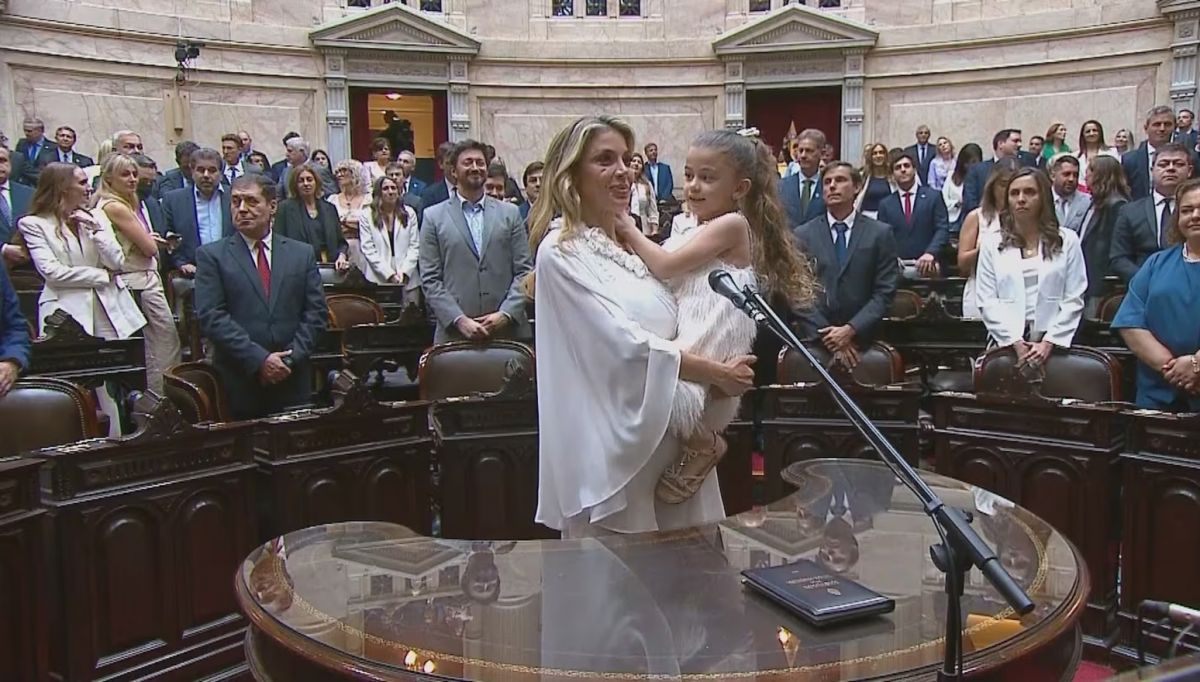 Durante la ceremonia de este miércoles a las 13, donde prestaron juramento los 127 nuevos legisladores que renovarán la mitad de la Cámara de Diputados, Gallardo sorprendió al pronunciar su compromiso con su hija en brazos.