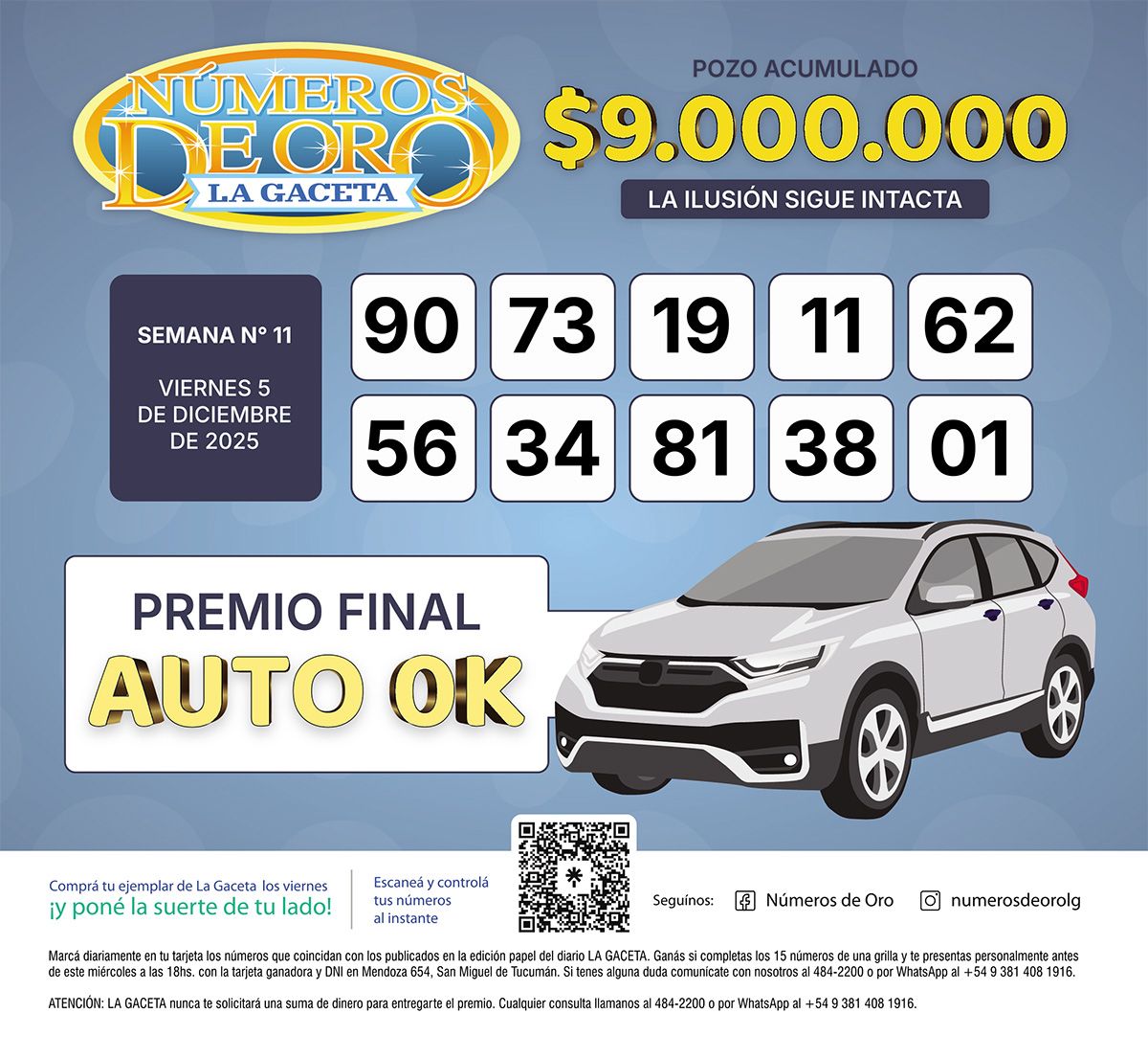 Los Números de Oro de LA GACETA del 5 de diciembre de 2025