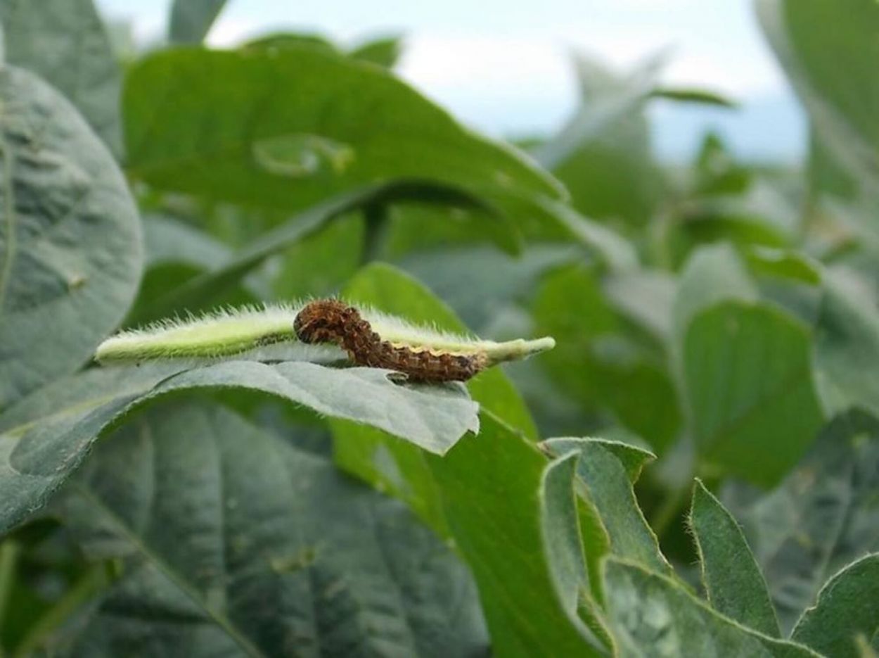 En soja no Bt, la oruga bolillera (Helicoverpa spp) es una plaga que puede cobrar importancia en las etapas tempranas del cultivo. Un aspecto clave es su monitoreo correcto, tarea que debe focalizarse en la observación de posturas (huevos individuales) y pequeñas orugas ubicadas en los brotes terminales, protegidas en el interior de los trifolios aún sin desplegar. En dicha fase, estas pequeñas orugas causan una leve defoliación; al avanzar en su desarrollo, las orugas grandes (mayores a 1 cm de longitud) dañan el brote apical produciendo una modificación de la estructura de las plantas, que puede repercutir negativamente sobre el rendimiento de la soja.