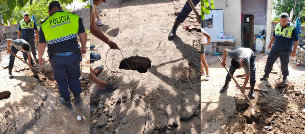 Frente a la urgencia y al estado emocional del niño, los policías tomaron una determinación que resultó clave: iniciar una excavación paralela al pozo para acceder al menor desde un lateral más seguro. Sin medir las consecuencias y con maniobras de riesgo, el personal cavó hasta generar un hueco que permitiera el ingreso.