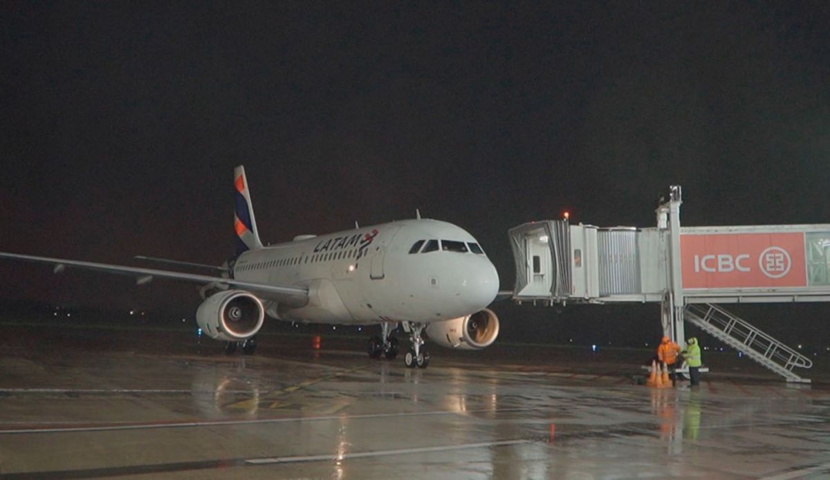 El avión de Latam, en el aeropuerto Benjamín Matienzo.