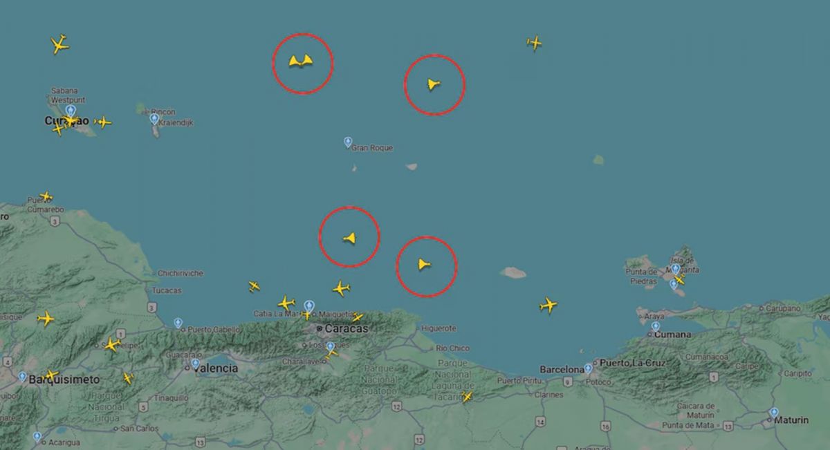 Al menos cinco aviones de combate de Estados Unidos se encuentran operando este jueves frente a la costa de Venezuela, a pocos kilómetros de Caracas, en el marco del despliegue militar estadounidense en el mar Caribe y en un contexto de creciente tensión entre Washington y el gobierno de Nicolás Maduro.