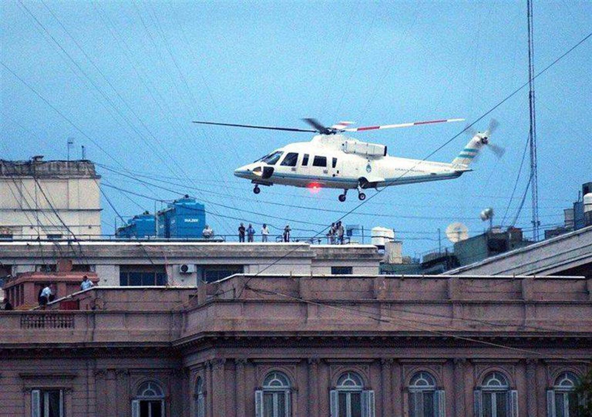 HUIDA. De la Rúa se retiró de la Casa Rosada en helicóptero.