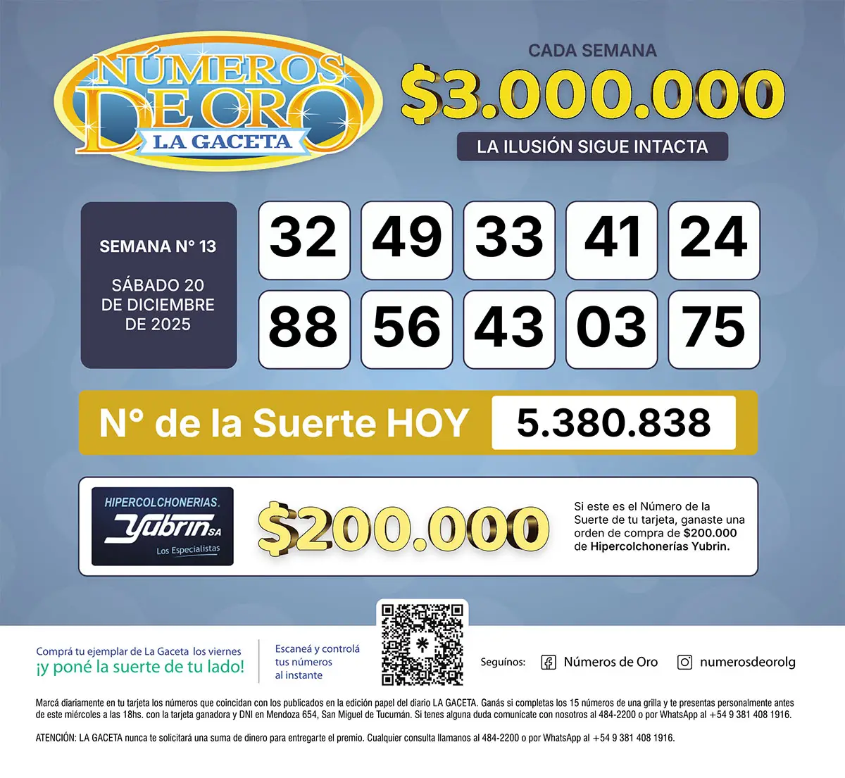 Los Números de Oro de LA GACETA del 20 de diciembre de 2025
