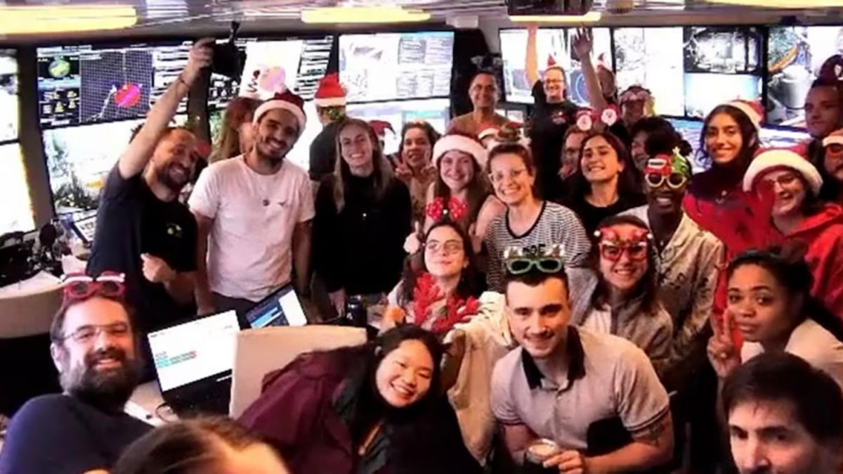 Cerca de medianoche, unos 30 científicos a bordo del buque R/V Falkor (too) -ataviados con gorros de Papá Noel- brindaron ante las cámaras que transmitían en vivo para una audiencia global por YouTube.
