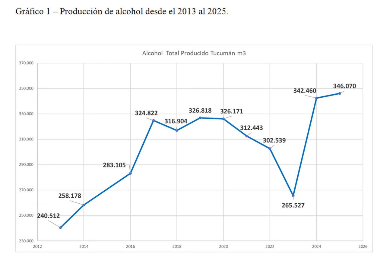 La producción regional de alcohol hidratado entre las provincias de Tucumán, Salta y Jujuy es de 564.193.431 litros, cifra que representa un incremento del 6% respecto a la misma fecha de la campaña 2024.