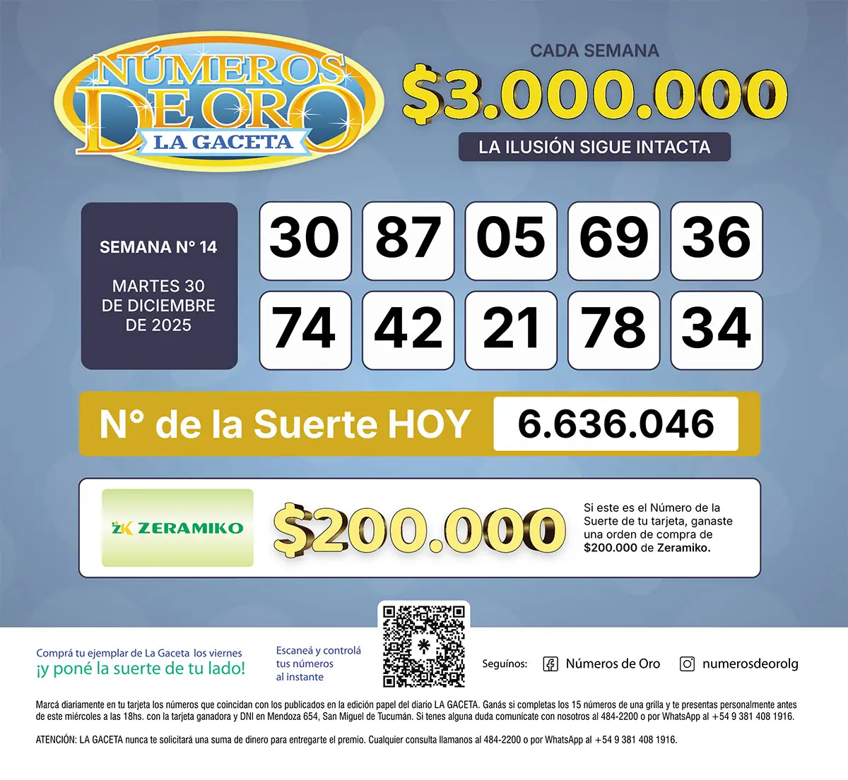 Los Números de Oro de LA GACETA del 30 de diciembre de 2025