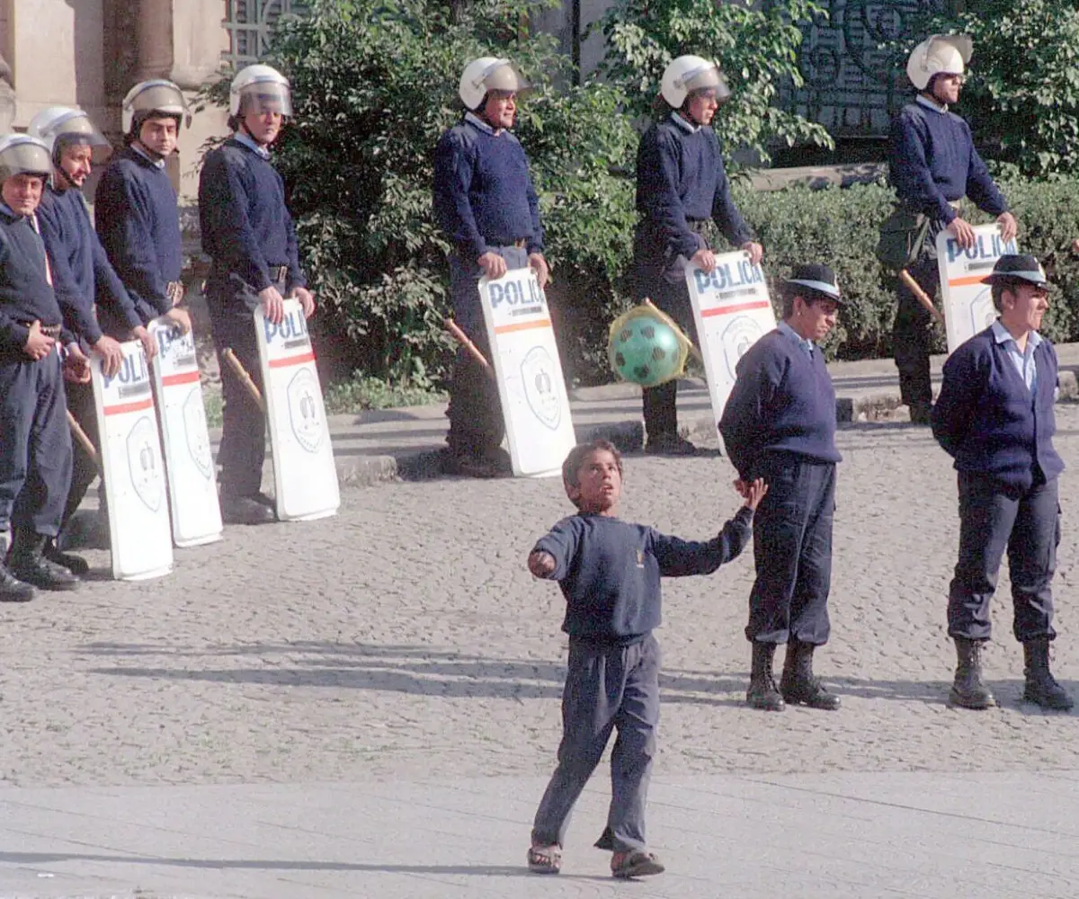 Es el 3 de agosto de 1999 y la postal del microcentro capitalino no tiene nada de invernal. El intendente Oscar Paz ha presentado la renuncia y los trabajadores municipales protestan por partida doble. Se quejan por la falta de pago; pero sobre todo por la incertidumbre que les genera el cuadro político. En medio de ese hervidero, con la guardia policial desplegada a pleno frente a la Casa de Gobierno, Augusto Ezequiel Guerrero está enfrascado en lo suyo. Sus 9 años lo habilitan a ensayar toda clase de malabares con la pelota, ajenos a la explosiva situación que lo rodea. Apenas un retazo de colorida inocencia entre semejante tensión.