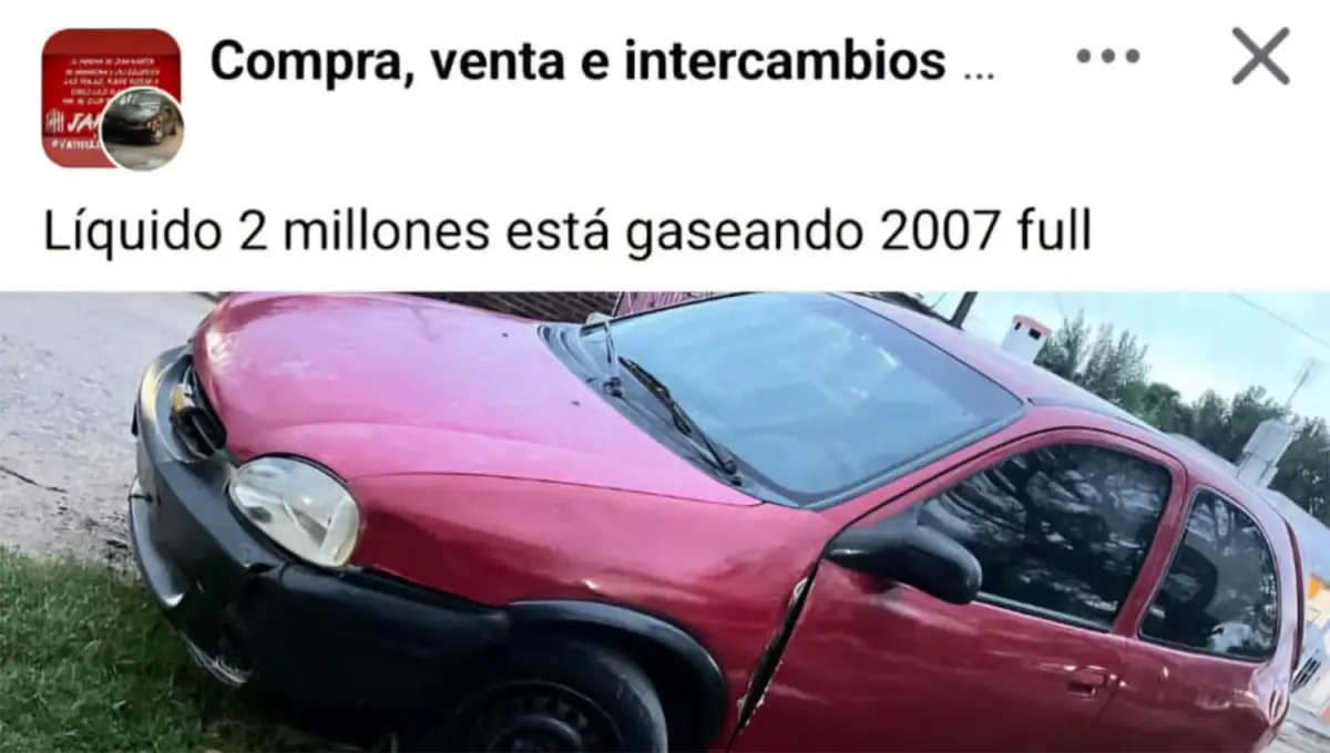EL DESTINO DEL AUTO. El supuesto comprador aprovechó la situación para ofrecer el vehículo en este posteo de Facebook.
