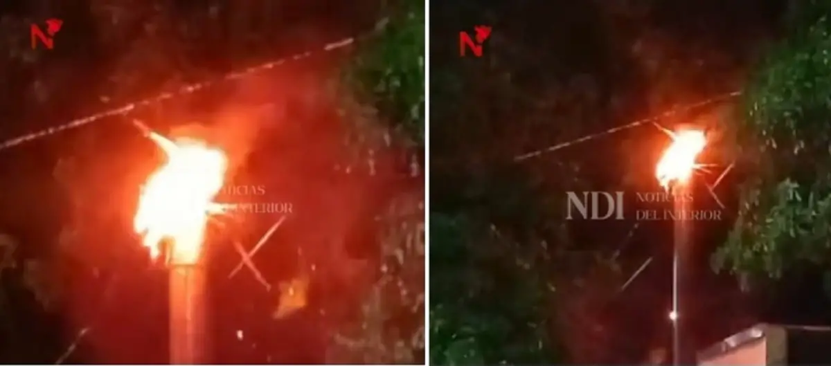 El episodio se registró en pasaje Los Naranjos al 700, donde testigos observaron cómo del poste salían llamas y chispas, presuntamente a raíz de un desperfecto en el tendido eléctrico. Las imágenes del incidente fueron registradas por el periodista Carlos Rosznercki, de Noticias del Interior, y rápidamente comenzaron a circular en redes sociales.