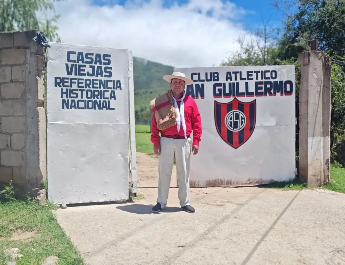Julio Peñalva está vestido y listo para cantar. Lleva el sombrero bien calzado, una camisa roja, el pañuelo al cuello y el poncho en el hombro. No es una puesta en escena: es su forma de estar. Así llega a la cancha de San Guillermo, el club de Tafí del Valle que preside, con la voz preparada y el cuerpo acostumbrado a pasar de una tarea a otra sin pedir permiso.