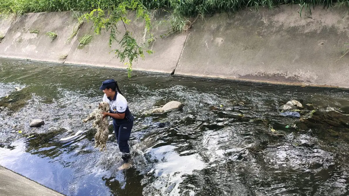 Con la colaboración de personas que se encontraban en el lugar, el personal logró rescatar al animal en pocos minutos, evitando que sufriera lesiones o complicaciones mayores. Afortunadamente, el perro fue sacado del canal sano y salvo.