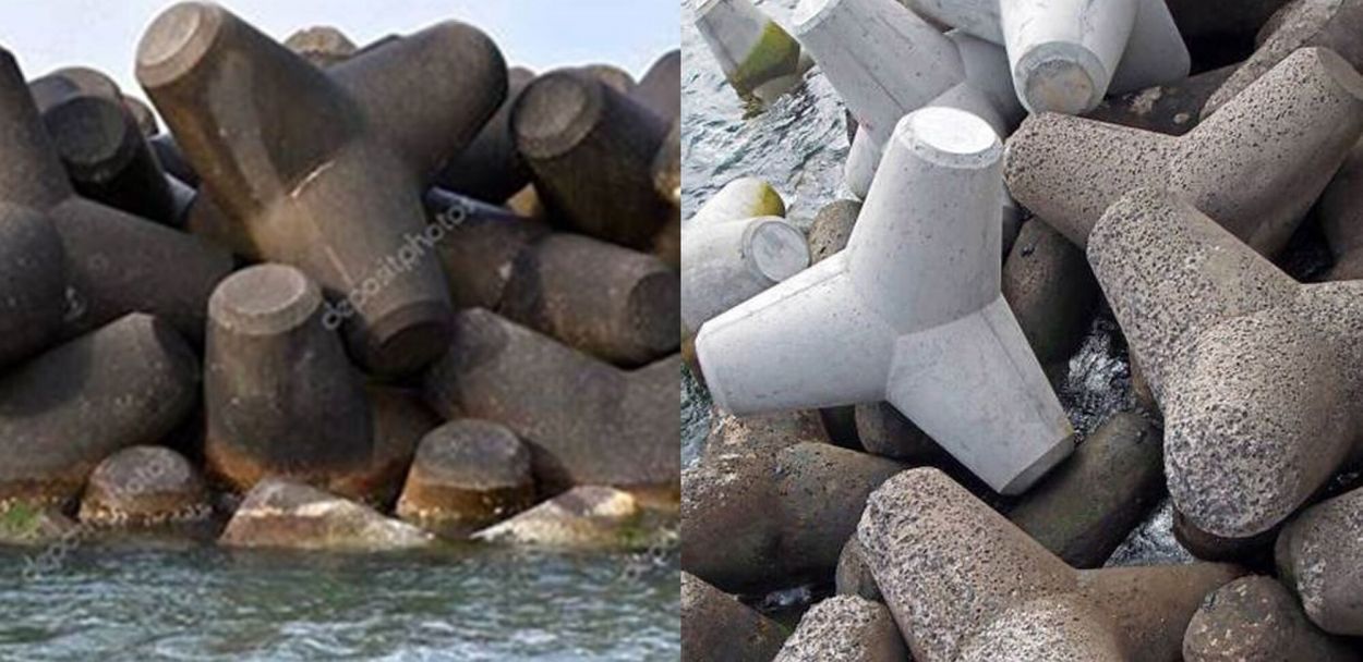 En numerosas regiones del mundo se emplean estructuras conocidas como tetrápodos, piezas tridimensionales de hormigón y acero, con pesos que oscilan entre 500 kilogramos y varias toneladas, diseñadas para disipar la energía del agua y contener grandes masas en movimiento. Su forma geométrica les permite asentarse de manera estable sobre tres de sus “patas”, lo que les proporciona una gran estabilidad incluso bajo condiciones de oleaje intenso.