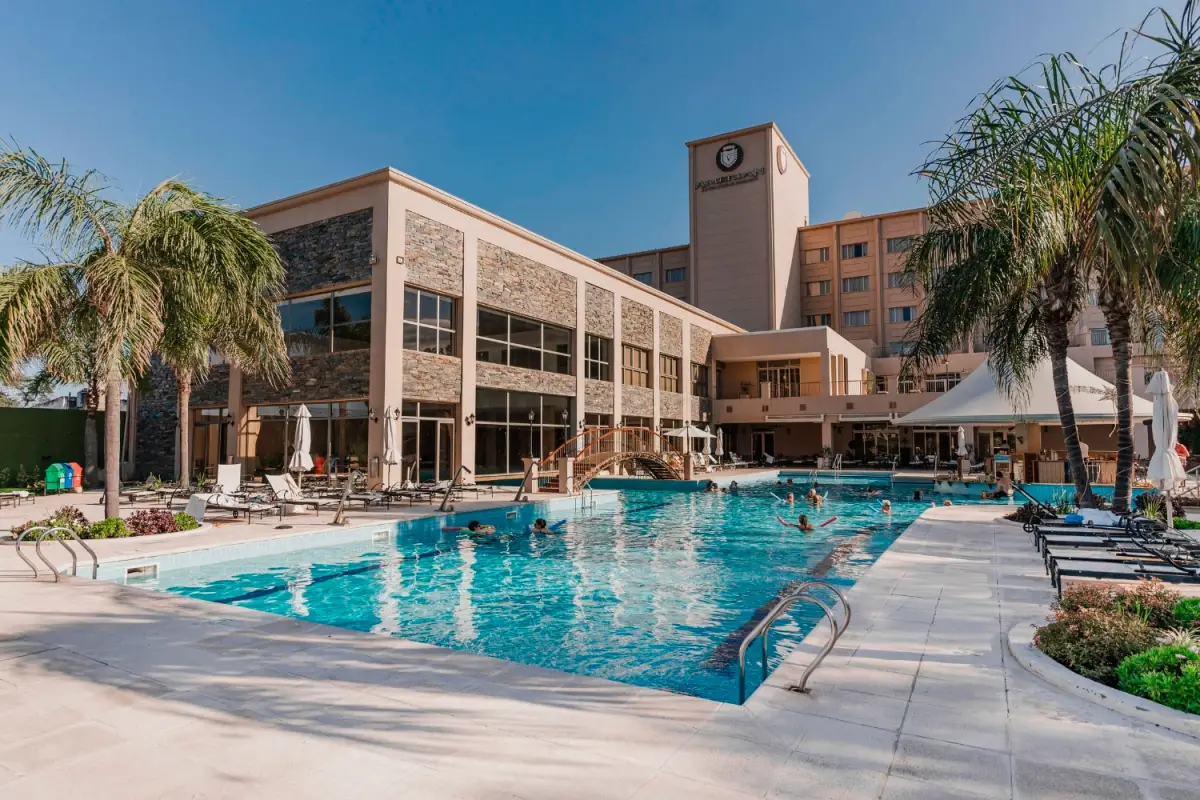 Las mañanas se llenan de movimiento con actividades como aquagym, aqua relax y zumba, que combinan bienestar y diversión. Para quienes prefieren el descanso total, el solárium de más de 1000 m² invita a disfrutar del sol termal con calma, mientras el bar de la piscina permite pedir licuados o tragos sin salir del agua. Además, la pileta cuenta con un sector cubierto conectado al exterior, ideal para seguir disfrutando sin importar el clima.