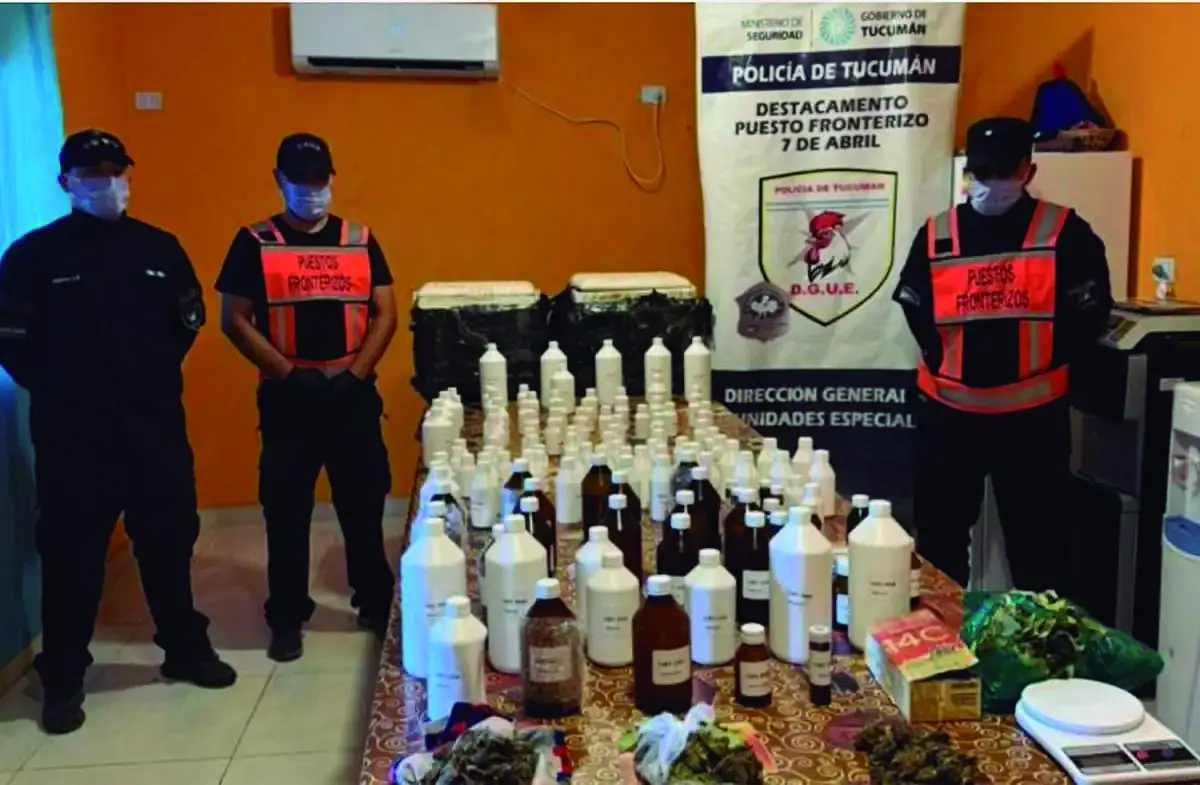 En los últimos meses no solo se detectó el traslado de grandes cantidades de precursores, sino también envíos en pequeñas partidas. En noviembre pasado, en el marco del Operativo Lapacho, la Policía encontró varias botellas con productos químicos que habían sido despachadas como encomiendas.