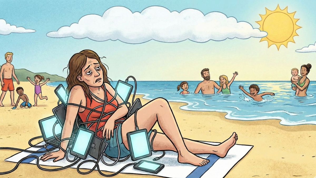 La semana pasada, una encuesta de la consultora Randstad reveló que solo el 38% de los trabajadores logramos desconectarnos completamente del trabajo durante las vacaciones. El estudio, que alcanzó a más de 4.000 personas en Argentina, Chile y Uruguay, detalló que un 62% sigue vinculado a la oficina de distintas formas: respondiendo mensajes, revisando correos o simplemente estando disponible "por las dudas".