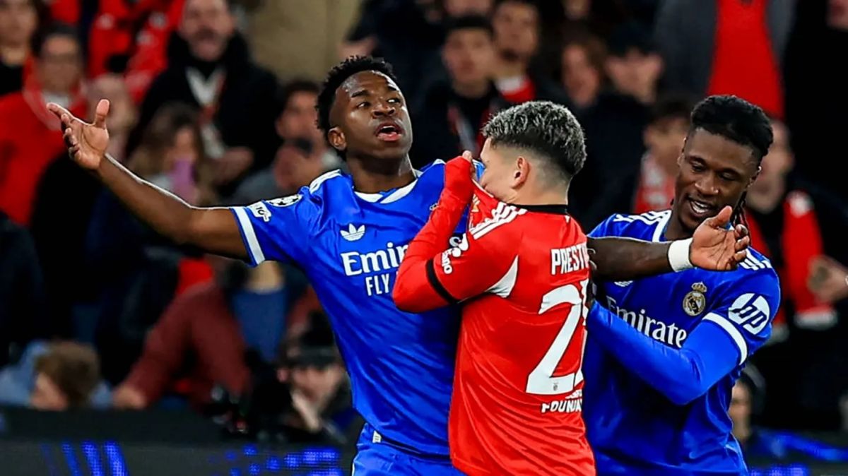 El episodio se produjo tras el gol convertido por Vinícius a los 50 minutos. Luego de abrir el marcador con un potente remate de derecha, el atacante celebró con un baile frente a la tribuna local, lo que generó una discusión con futbolistas del Benfica y le valió una tarjeta amarilla.