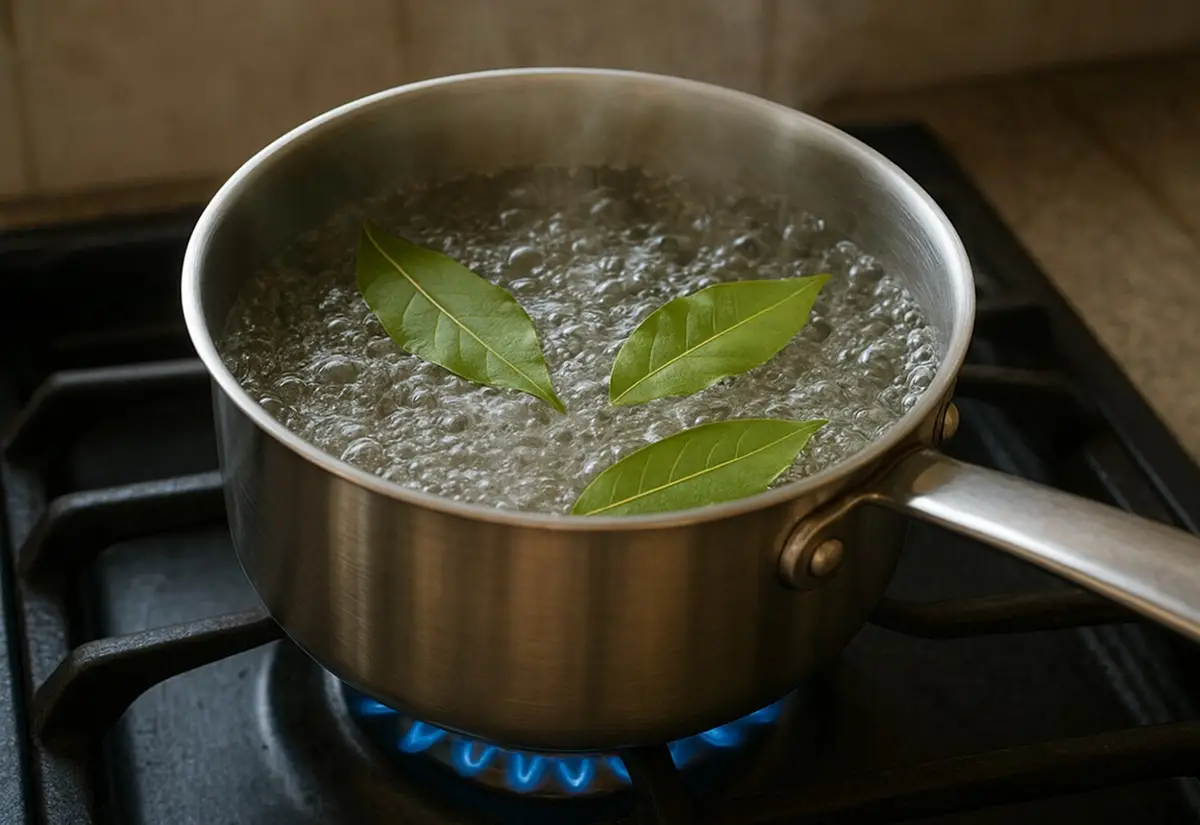 Cuando el agua hierve, el vapor liberado arrastra los aceites esenciales del laurel (como el eucaliptol o el linalol), responsables de su aroma intenso. Esos compuestos, además de oler bien, tienen propiedades calmantes y ligeramente antibacterianas.