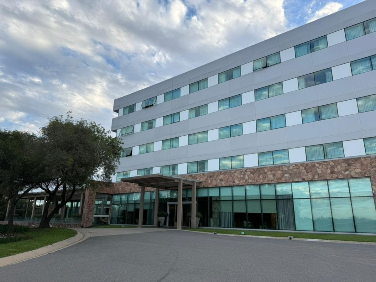 PRIMER NIVEL. La fachada del Orfeo Suites, hotel donde se hospeda la delegación de Atlético. El predio cuenta con gimnasio propio, comedor interno, piscina y cancha de alto rendimiento. Foto: Diego Caminos