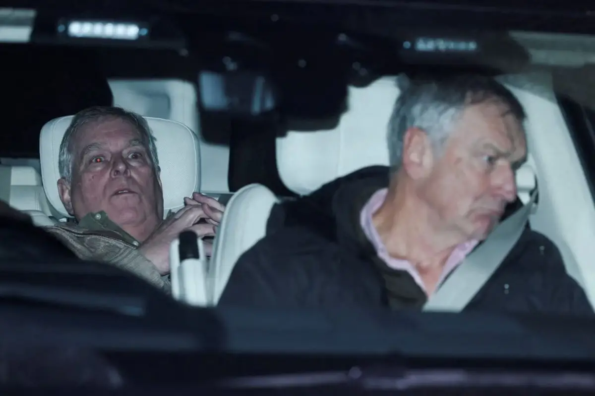 LONDRES, Reino Unido.- Encorvado en el asiento trasero de su Range Rover, con los ojos rojos, la imagen de Andrés Mountbatten-Windsor visiblemente afectado, mientras el auto deja atrás la comisaría de Aylsham, en el condado de Norfolk, Inglaterra, es histórica.