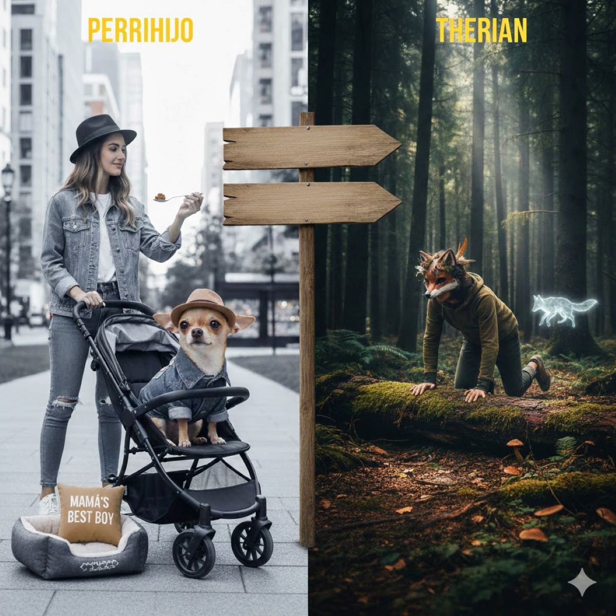 Más allá de la conexión animal, los dos casos se vinculan por lo que los especialistas definen como una insatisfacción con el rol humano tradicional. Un therian suele realizar prácticas como caminar en cuatro patas o buscar entornos naturales para satisfacer a su "animal interior"; mientras que el dueño de un perrihijo busca ese mismo contacto con lo instintivo de ser padre o madre a través de su mascota.