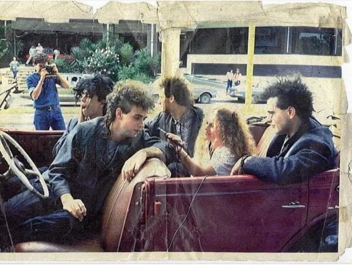 Y sí, la fotografía despertó el recuerdo y el recuerdo devolvió el video. La grabación se realizó el 25 de abril de 1986 en el parque 9 de Julio, horas antes del recital que la banda ofreció esa noche en Tucumán. Lo curioso es que la conversación de ese día no tuvo como escenario principal un estudio de televisión ni una conferencia formal de prensa, sino un encuentro distendido a bordo de un Ford 35 descapotable, bajo el sol de la siesta.