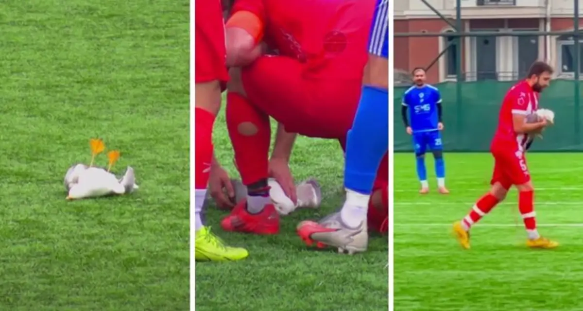 Corría el minuto 22 cuando el arquero visitante, Muhammet Uyanık, despejó desde su área y el balón golpeó de lleno al ave que cruzaba el campo en pleno vuelo. La gaviota cayó paralizada y el juego se detuvo de inmediato. Fue entonces cuando el capitán Gani Çatan reaccionó sin dudar.