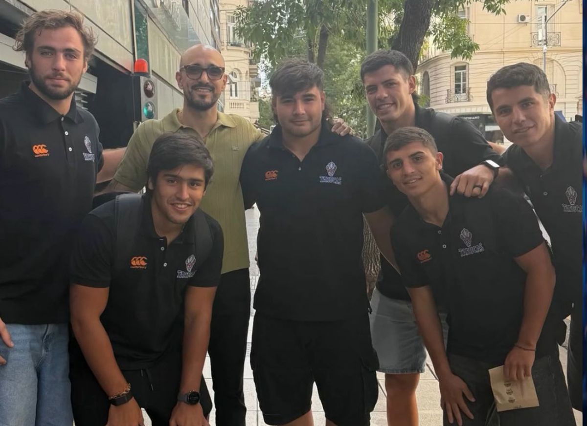 La escena fue espontánea. El cantante, vestido de manera informal, se detuvo al ver al grupo y les preguntó de qué equipo eran. Cuando escuchó “Tarucas”, sorprendió con una respuesta que no pasó desapercibida: dijo que los conocía. La reacción fue inmediata. Santiago Saleme fue uno de los que se dio vuelta al instante para sumarse al intercambio, y en cuestión de segundos todos estaban posando.