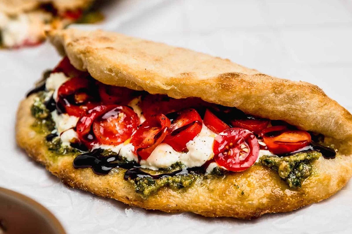 “Este sánguche es delicioso porque se prepara con masa de pizza; es esponjoso, crocante y perfecto para rellenar con lo que quieras”, dice Salinas y explica que armar uno es tan sencillo como hacer tu propia masa de pizza y luego doblarla a la mitad antes de hornear. Esa es la manera en que queda con forma de pan listo para el sánguche del fin de semana.