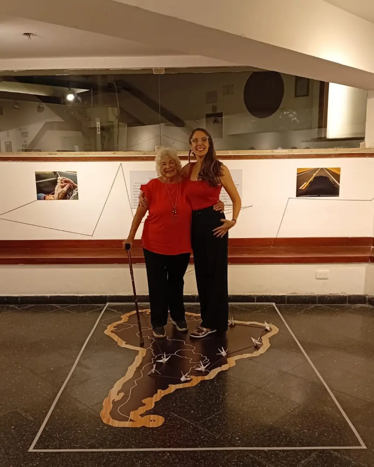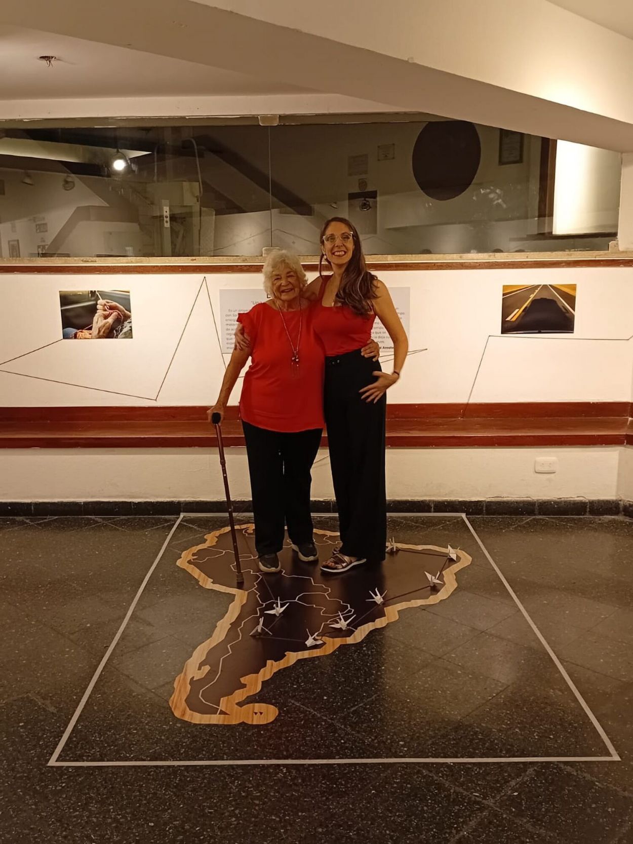 Sobre el piso, el dibujo de un mapa de América del Sur marcó el itinerario de aquella aventura que tuvo a Sara al volante y a Soledad empeñada en seguirla, cámara en mano. Allí mismo se fundieron en un abrazo, uno más, porque había un motivo fundamental para festejar: Sara estaba cumpliendo 88 años.