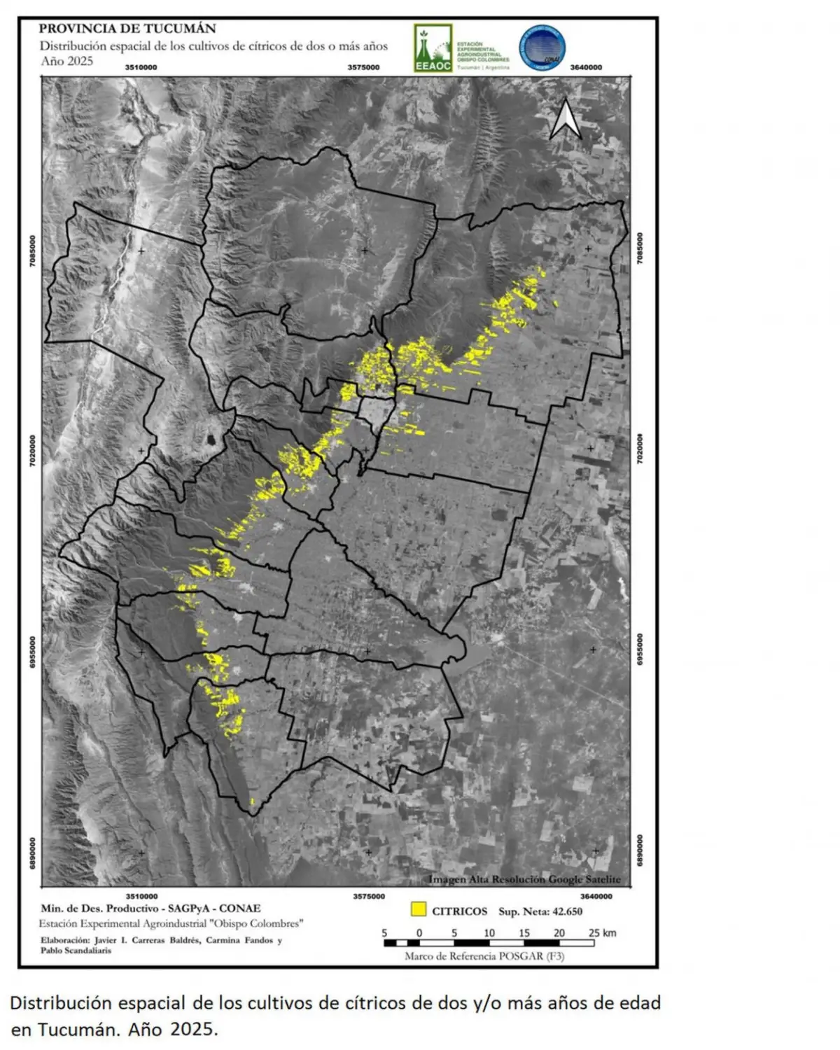 Para alcanzar esta precisión, la Eeaoc utilizó imágenes de los satélites Sentinel 2 (A, B y C) e imágenes de alta resolución provistas en el programa Google Earth desde el mes de julio hasta el mes de diciembre de 2025, aplicando metodologías de clasificación multiespectral y análisis con Sistemas de Información Geográfica (S.I.G.).